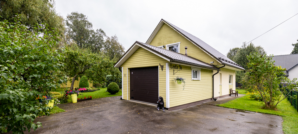tuulekoda; esik, kus on sisseehitatud garderoobikapp; suur avatud elutuba-köök, kust pääs mõnusasse päeva/õhtupäiksepoolsesse talveaeda; kabinet/magamistuba; pesuruum koos leiliruumiga (elektrikeris) ja eraldi wc. Lisaks on garaaž, mis on hetkel jaotatud kaheks hoiuruumiks.
