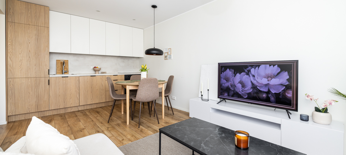 Valgusküllane ja hubane 3-toaline korter läbi maja planeeringuga. Korteris on avar elutuba, köök, kaks eraldi magamistuba, vannituba ja WC, mõlemast magamistoast pääseb rõdule. Korter on valdavalt sisustatud, täpne mööbli ja tehnika koosseis kokkuleppel, olemas keskküte ning vannitoas põrandaküte.