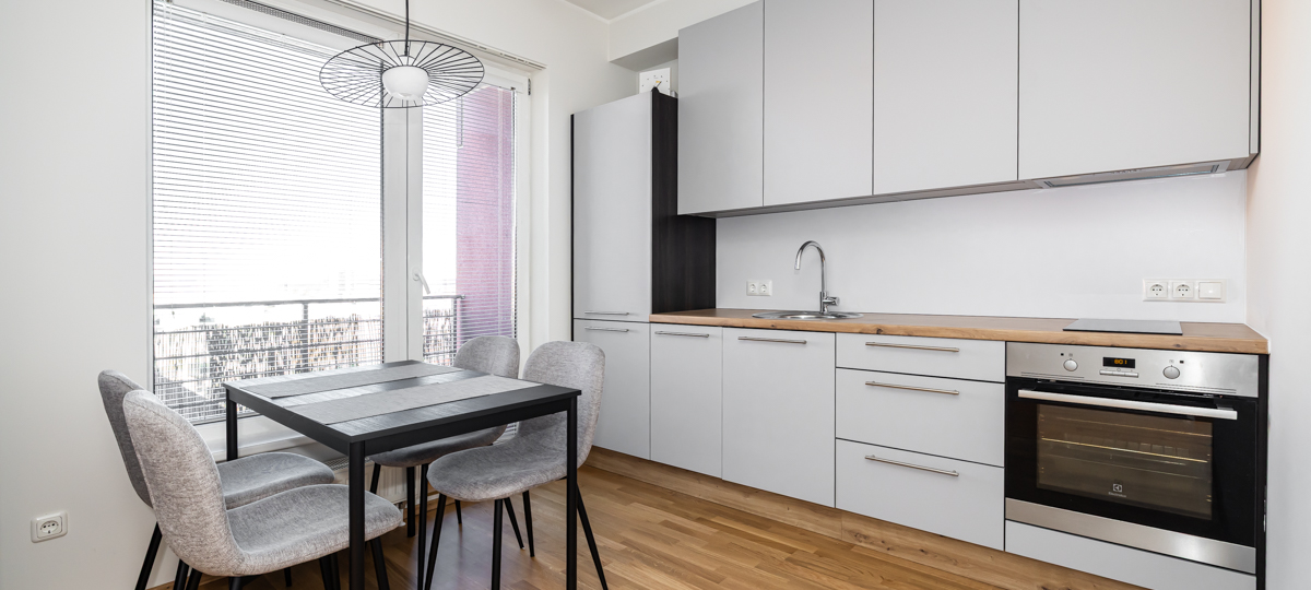 Korterisse on värskelt paigaldatud uus köögimööbel.