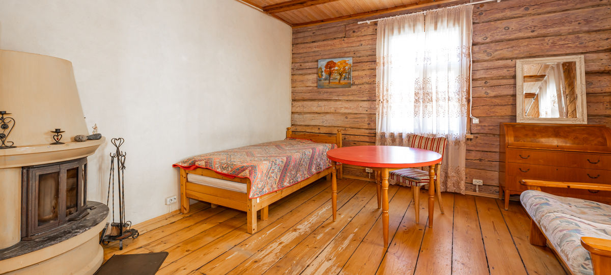 Korteris on säilinud palju ehedat iseloomu – naturaalne puit, palkseinad, laudpõrandad ning hubasust loov õhkküttekamin annavad kodule sooja ja omanäolise atmosfääri. Täiendavalt on kasutusel elektriradiaatorid.