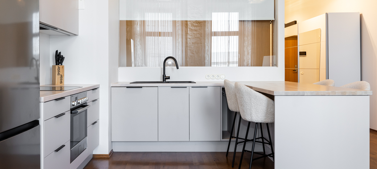 Värskenduskuuri käigus on värskendatud seinad, õlitatud põrandad, paigaldatud on uus erilahendustellimus köögimööbel ja välja on vahetatud kogu korteri sisustus.