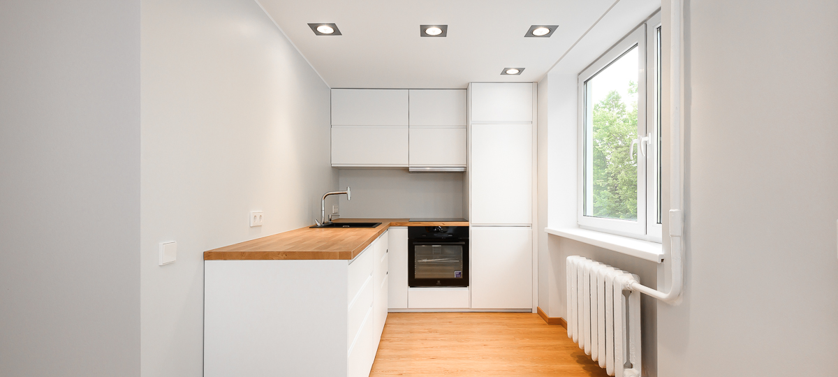 Avatud köök-elutuba. Köögis uus köögimööbel.