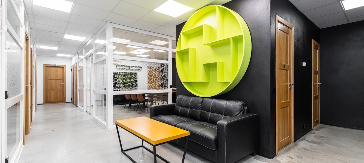 Tubades on korralik mööbel, sh reguleeritavad töölauad. Üürnike kasutada jääb lisaks üldalas kööginurk, nõupidamiste ruum, tualettruumid.
