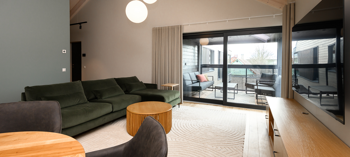 Teise korruse korterite rõdud moodustavad osalise katuse esimese korruse korterite terrassidele. Kõikide korterite elutoad, terrassid ja rõdud on suunaga päevapäikese poole.