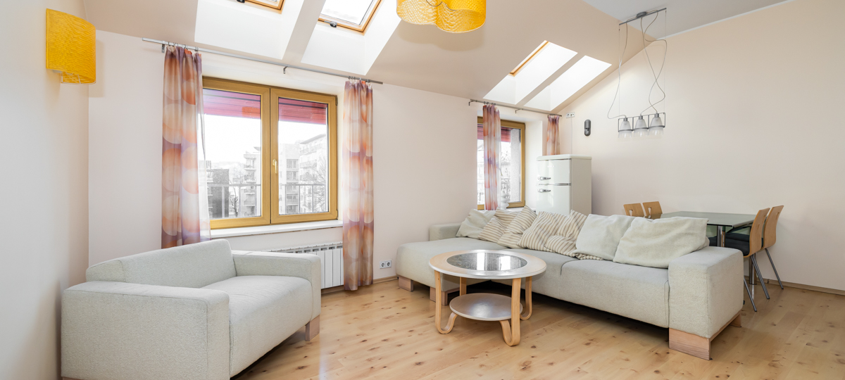 Korter on läbi maja planeeringuga, enamuses sisustatud ja tänu katuseakendele valgusküllane!