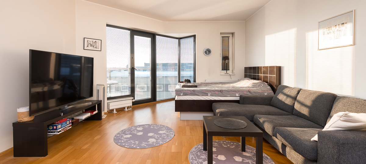 Suurte aknapindadega valgusküllane korter, mis sobib nii püsikoduks kui üürile andmiseks.