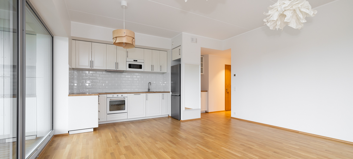 pesumasin, dušš, köögimööbel, külmkapp, avatud köök, parkett