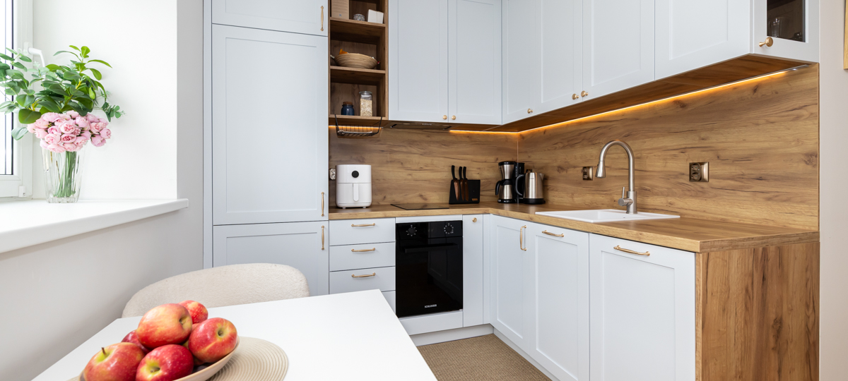 Korterisse on paigaldatud hiljuti uus köögimööbel koos kodutehnikaga.