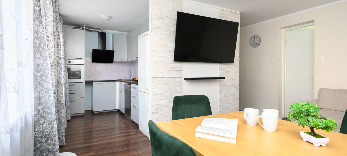 Korter müüakse koos köögimööbli ja -tehnikaga (indukstioonpliit, õhupuhasti, integreeritud elektriahi, külmik, nõudepesumasin).
