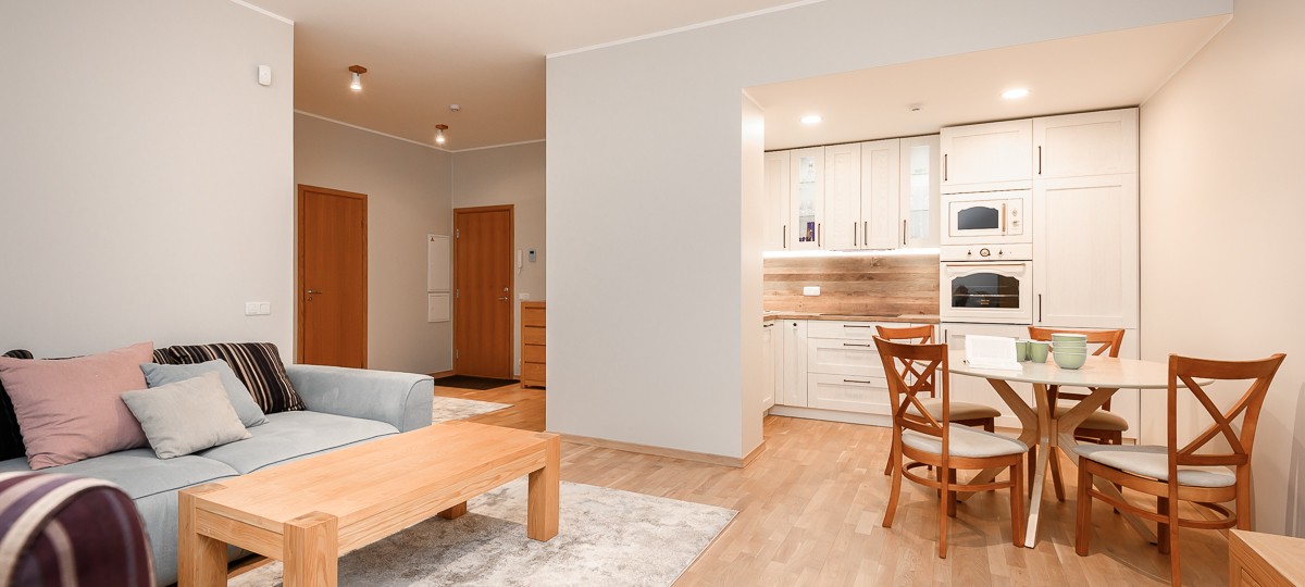 Tõeliselt avar esik, kus mahukas lükandustega garderoobikapp, köök veidi eraldatud, värskelt uuendatud köögimööbli ja tehnikaga (külmik, elektripliit, elektriahi, õhupuhasti, mikrolaineahi, nõudepesumasin). Elutuba liitub köögiga mõttelise söögitoa kaudu. Magamistuba asetseb mugavalt pesuruumi kõrval. Paigaldatud mullivann, uuendatud sanitaartehnika.